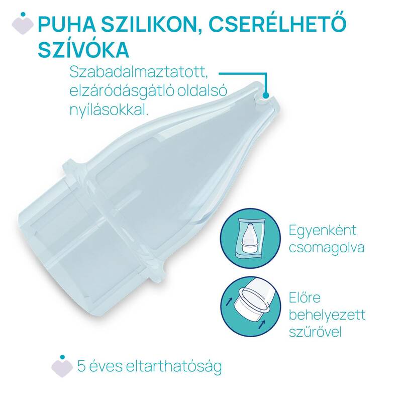 A puha, szilikon szívókát úgy tervezték, hogy tökéletesen illeszkedjenek a kicsik érzékeny orrlyukaiba.