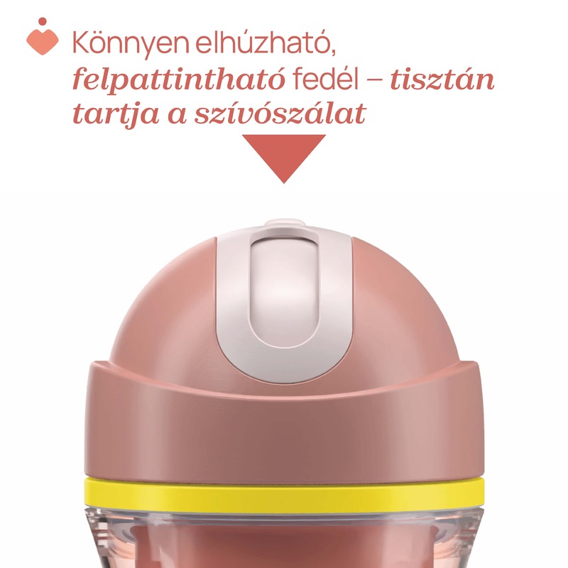 Praktikus szívószálas itató, csepegésmentes szeleppel ellátott szívószállal.