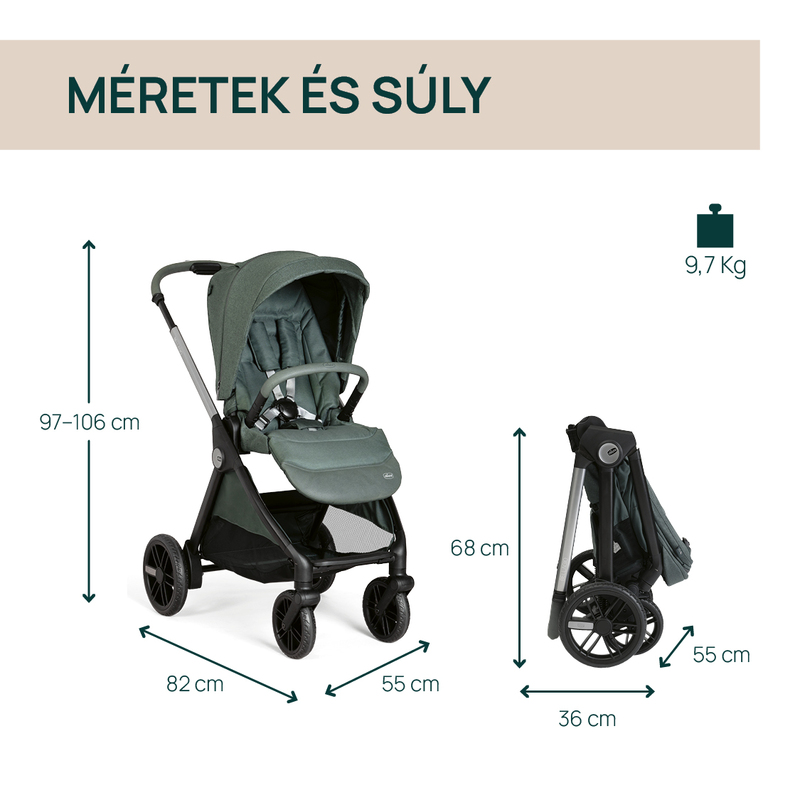 - TÉLI-NYÁRI KUPOLÁVAL UV 50+: A babakocsi napellenzővel és szélvédővel van felszerelve, amely többféle pozícióba állítható.
