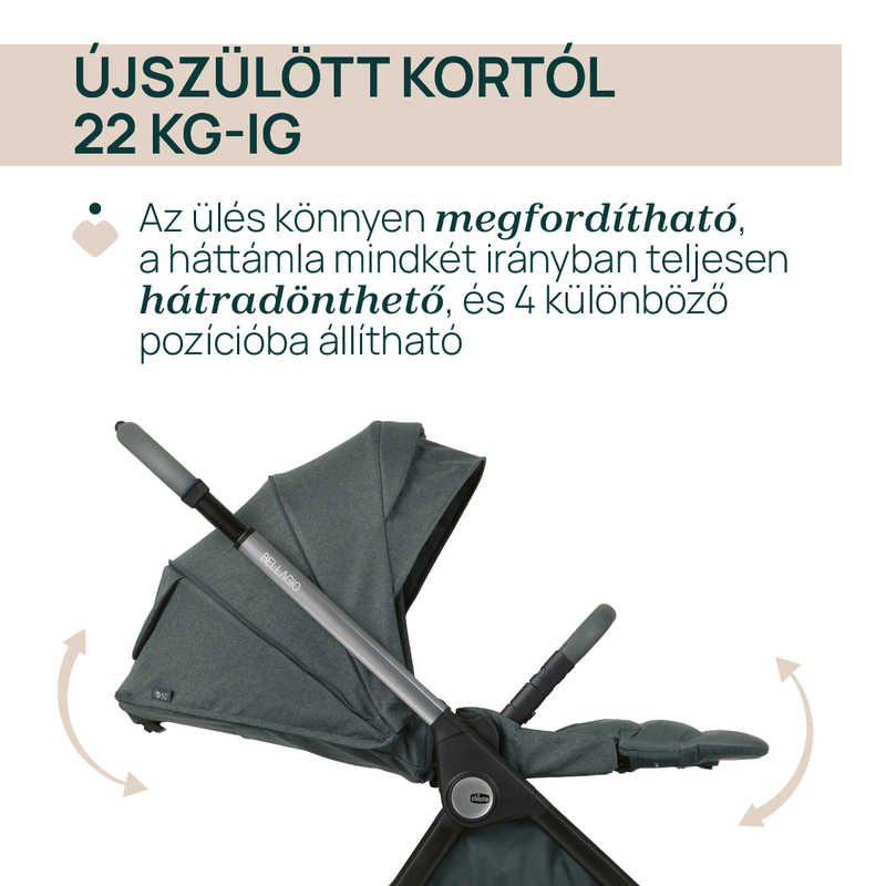 Az innovatív OneTouch összecsukható rendszerrel megtervezett Bellagio babakocsi alkalmazkodik az újdonsült szülők dinamikus életstílusához, lehetővé teszi számukra, hogy mindent könnyedén kezeljenek – az összecsukástól a háttámla beállításáig – egyetlen mozdulattal, biztosítva a maximális funkcionalitást. A Bellagio az első moduláris babakocsi, amely mindkét irányban összecsukható mechanizmussal rendelkezik. Összecsukva önállóan áll, és kényelmes fogantyúval rendelkezik a szállításhoz.