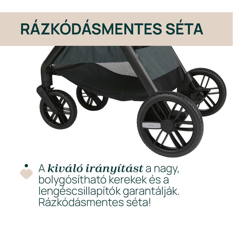 - A babakocsi kerekei golyóscsapágyakkal és lengéscsillapítókkal vannak ellátva, így könnyű a manőverezhetősége és rázkódásmentes utazást biztosít a gyermeknek, szülőnek!