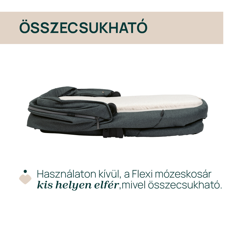 FLEXI MÓZESKOSÁRKönnyű, mindössze 4,4 kg! Összecsukva kis helyen tárolható.Ez a mózes használható otthoni alváshoz és pihenéshez is!